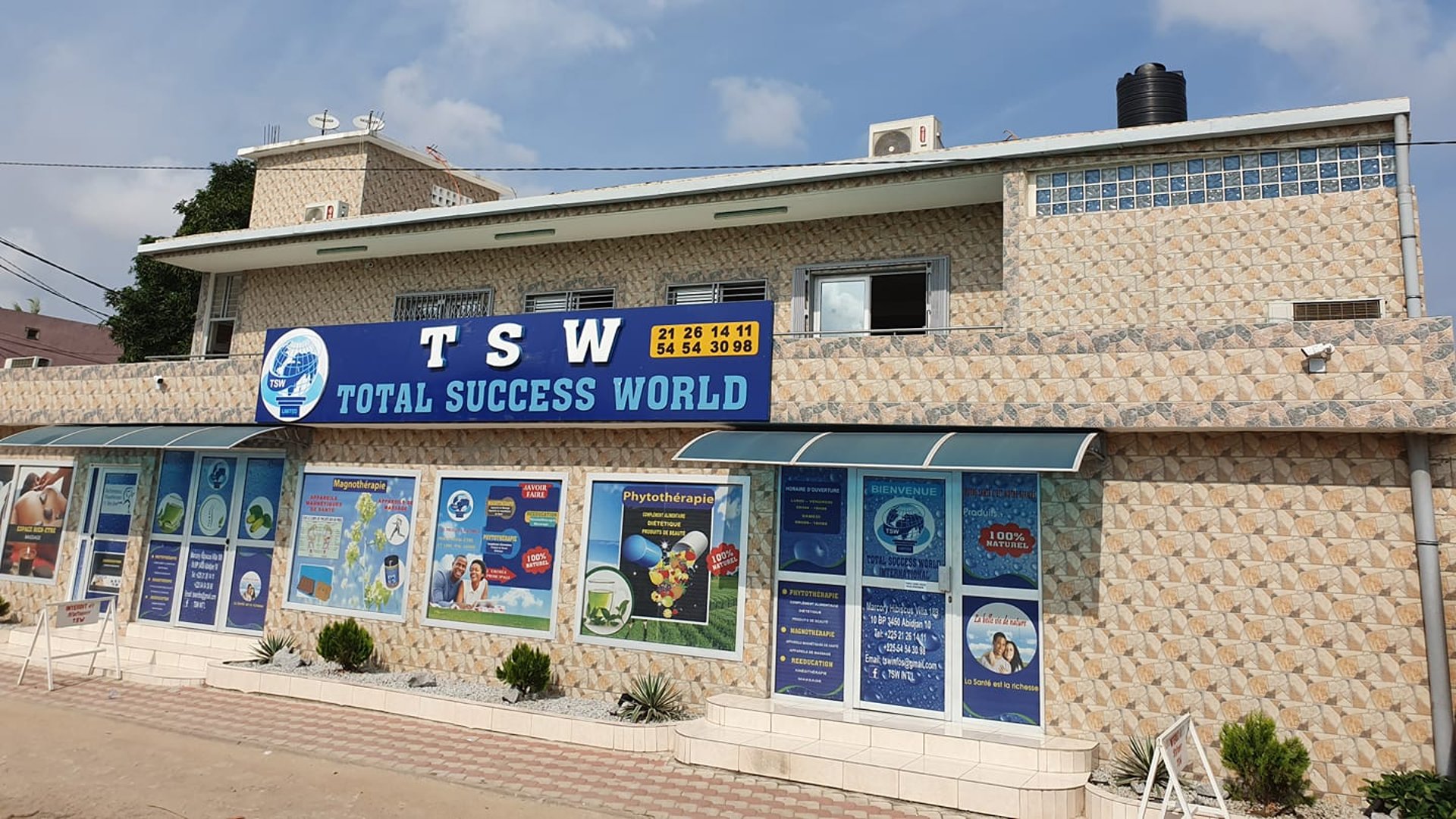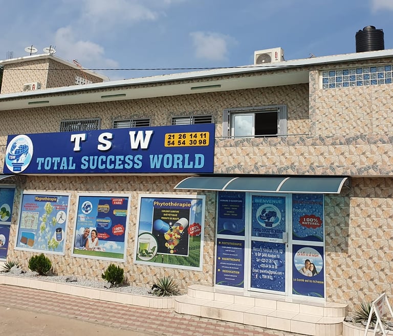 Total Success World(TSW) est une entreprise créée en 2009,dont le siège social est à Marcory Cité Hibiscus.Forte de plus d'une décennies d'expérience,TSW s'est imposée comme un acteur de référence dans le domaine du bien-être et de la santé naturelle.